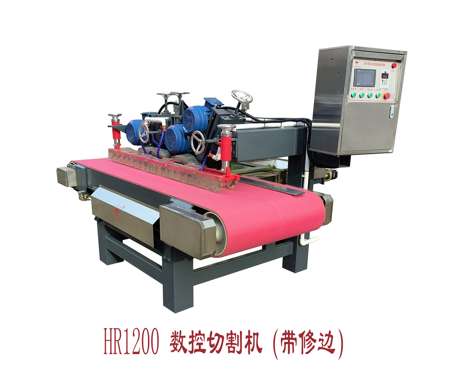 HR-1200型前后刀數控切割機(帶修邊)是一款用數字輸入尺寸定位的切割設備,整機設計合理,定位部分采用進口滾珠絲桿高精度步進系統配合而成,運行平穩精確度高,誤差達到(0.1mm)左右,且操作方便,不用人工量尺,只在鍵盤上輸入所需尺寸。切割完成后還自帶修邊磨頭,可以切割修邊一次性完成,效率更高,更省人工,該產品已經大量投入市場,獲得廣大客戶一致好評!
